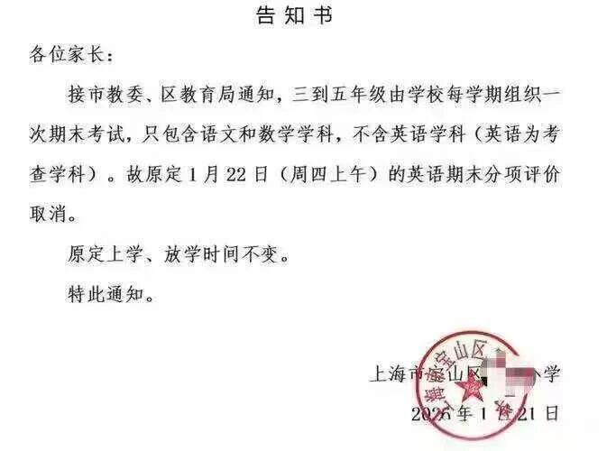 彩经网官网开奖-“深水炸弹”?上海3-5年级不考英语了!